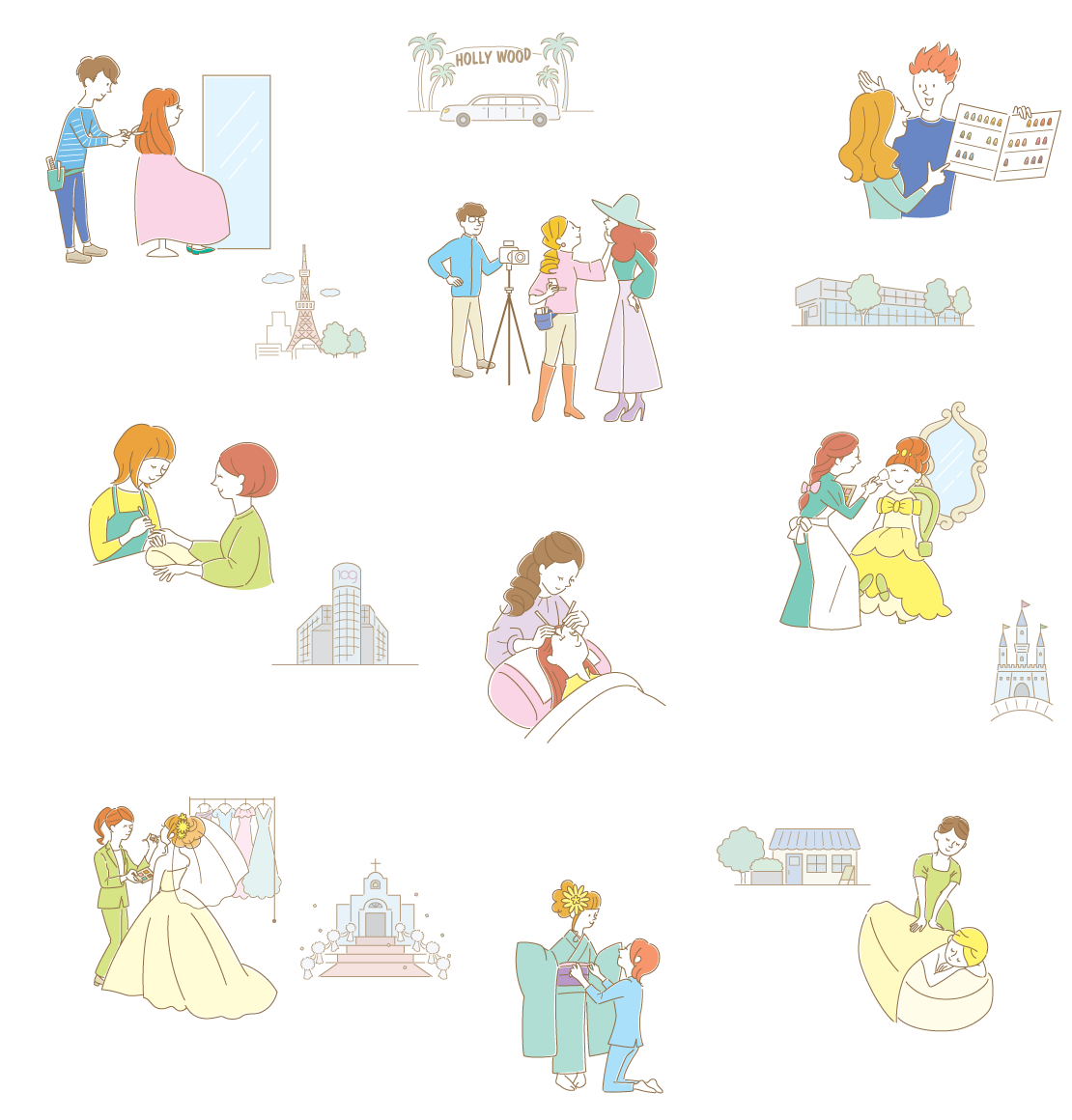 カット・カラー・メイク・ヘアアレンジ・ネイル等美容業界での基礎を一通りで学び、その後自分が伸ばしたい技術を選んで学びを深めます。なりたい職業が決まっていても、まだはっきりと決まっていなくても、途中で目指すものが変わった場合でも、将来を見据えて技術の向上を目指すことができます。安心と可能性を秘めたカリキュラムがYAMANOが選ばれている理由の一つになっています。